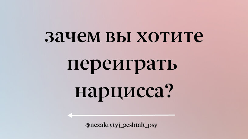 Любые идеи переиграть нарцисса больше похожи на застревание в его же картине мира, на его же уровне развития. И это огромный парадокс, потому что человеку надо еще адаптироваться к игре, понять ее "механику", а нарцисс будет все это делать органич