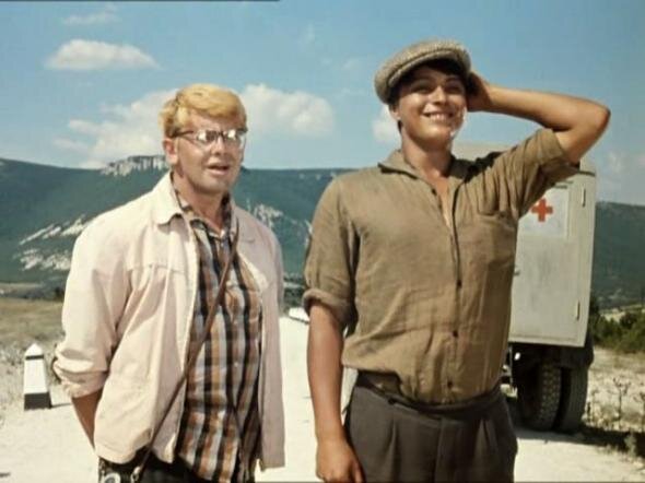 И в конце концов мне разрешили самой прыгать со скалы. Между прочим, мне больше запомнилось не само купание, а как мы с Сашей Демьяненко сидим после купания и дрожим. Дрожим по-настоящему. Дело в том, что мы должны выглядеть на экране мокрыми. Но день был жаркий, и влага с нас мигом испарялась. Поэтому нас водой из речки поливали, а в ней градусов семь. После этой экзекуции мне налили спирта и заставили выпить, чтобы не заболела. Как добралась до турбазы, где мы жили, не помню…