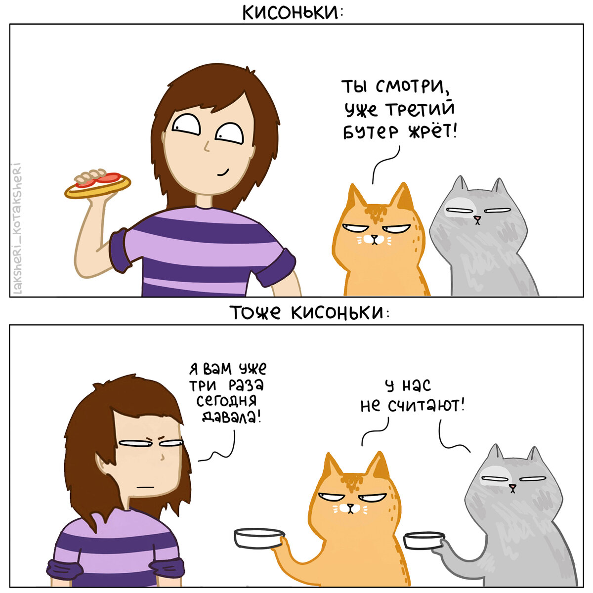 Можно есть сколько угодно: Котикам можно решать, сколько ласкаться, а людям — нет: Котикам можно самим выбирать игрушки: Можно делать вид, что ты тут самая несчастная и нелюбимая сиротинушка: Можно самим планировать расписание дня: Котикам можно эволюционировать как угодно, и всё равно быть в выигрыше: Котикам подвластно даже изменить осанку своего человека! В общем котикам можно всё! А у нас вышли Новогодние сувенирчики! Тык сюды, чтобы посмотреть!