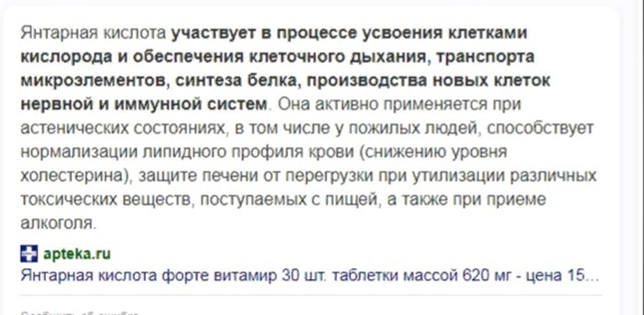 Тезис: янтарная кислота – тонизирующее средство, и потому ее нельзя пить после 5 часов, тем более на ночь и тем более сочетать с мелатонином. А я вот, дурочка, пью с утра и на ночь тоже, и перед сном сочетаю с мелатонином. Поясняю, почему я так поступаю. Тонизирует или не тонизирует? Про тонизирующий эффект. Янтарная кислота не лупит по ЦНС, искусственно бодря ее. Таким выходками совсем другие препараты отличаются, а не янтарная кислота. Они дороже и купить их сложнее)))) Но почему тогда янтарная кислота реально с утра бодрит часть человеков (причем не все отмечают такой эффект в любое время суток)? Итак, вспомним основные функции янтарной кислоты: улучшение клеточного дыхания и нормализация клеточного энергообмена. Ну и много еще чего, но выделим эти две пока что. Итак, человек с нарушенным клеточным дыханием и энергообменом слабый, зевает, еле ноги переставляет. Это можно принять за сонливость, но это проявление болезни, а не желания поспать. Потому что такой «сонный» человек от ст