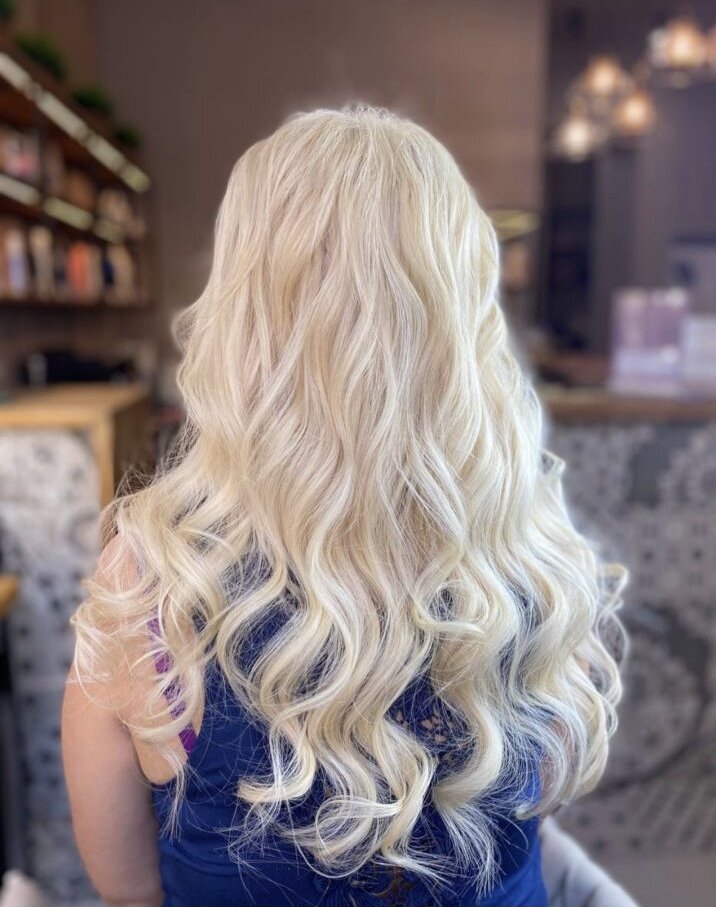 Структура вашего собственного волоса также имеет огромное значение. В основном наращивание предпочитают обладательницы тонких, негустых волос. Хотя бывают и обратные примеры. Когда клиент хочет нарастить только длину к какому-то значимому событию. Если ваш волос все же тонкий и негустой количество капсул должно быть оптимальным под вашу структуру. Не наращивайте излишнюю густоту, иначе испортите волосяные луковицы. Точное количество капсул определит мастер. На фото ниже обладательница тотального блонда и тонких слабых от природы волос. Мастер нарастила 180 капсул.