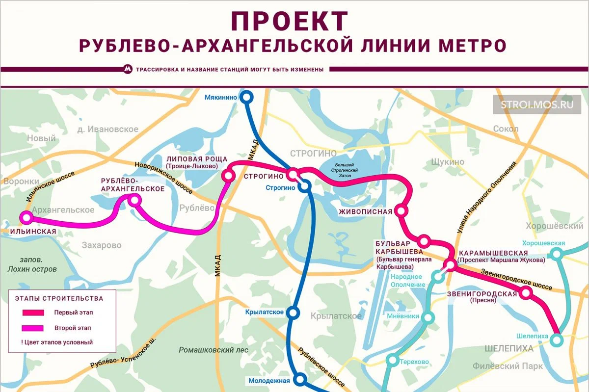 Несмотря на то, что официально объявлено о старте активных строительных работ в следующем году, возведение новых станций началось уже сейчас. При этом средства на строительство первой очереди Рублево-Архангельской линия от «Шелепихи» до «Липовой Рощи» уже заложены в Адресной инвестиционной программе города Москвы на 2022-2025гг.