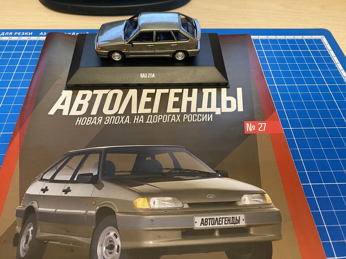 ВАЗ-2114, она же Лада Самара 2, бестселлер российского авторынка начала 2000-х годов. Долгое время эта машина находилась в топе продаж, а всего с 2001 по 2013 года было выпущено 929 930 пятидверных хетчбэков. Хоть цифрой "2" АвтоВАЗ и преподносил модели 2113,14,15, как новое поколение переднеприводных машин, по сути это просто рестайлинг "девятого" семейства. И вот, спустя почти 10 лет после окончания производства, на свет появилась и первая в мире модель автомобиля автомобиля ВАЗ-2114 в 1/43 масштабе в рамках журнальной серии "Автолегенды. Новая эпоха на дорогах России" от издательства DeAgostini. Перед осмотром самой модели заглянем в журнал. Ага, тираж выпуска №27 составляет 7200 экземпляров - постепенно идем на понижение, Калина и Гранта SW из предыдущих выпусков вышли тиражом 8000 и 8500 шт. соответственно. И это странно, так как масштабная модель ВАЗ-2114 была многими ну очень долгожданна! Кстати, полистав журнал, с огромным удивлением для себя узнал, что изначально изменения в з