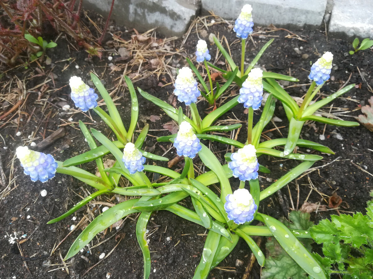 В прошлом году закупила разных мускариков, белых, голубых, двухцветных. И весной стала ждать, когда что появится, проявится. Первыми показались голубые, дольше всех не могли зацвести белые