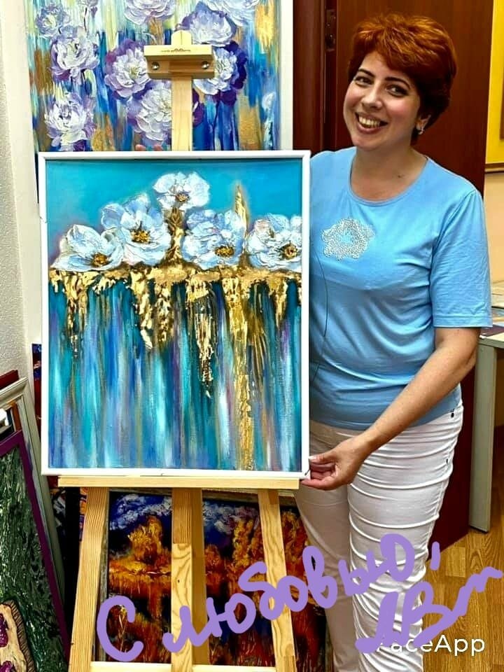 Очень известный в свое время художник-символист Густав Моро (1826—1898) отличался большой ленью. Но все считали, что художник попросту презирает высший свет и потому так редко появляется в разных салонах и на вечерах. Огюст Ренуар про него говорил: Густав Моро - никудышный художник! Он не умеет даже толком нарисовать ногу. Но чем он всех берет, и особенно евреев-ростовщиков: золотом. Да-да, он втискивает в свои картины так много золота, что никто не может устоять! Я тоже иной раз люблю золотой потали добавить. Думаю, что это вполне уместно. Интерьерная работа "Белые цветы на голубом фоне" 60х50см, холст, масло. #интерьер #картинавинтерьер #картинылилиивольской #галереянапервомайской #галереявмоскве