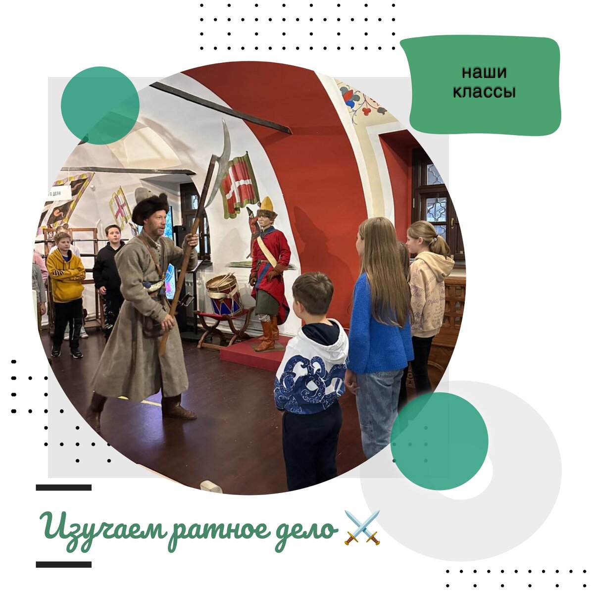 Экспозиционный маршрут проходил через восемь залов, которые рассказывают о важной роли служилых людей в суровой борьбе с иноземными захватчиками, укреплении и расширении рубежей нашей Родины, достигшей тех территориальных пределов, которые определяют ее и в настоящее время. ⚔️ Также мы узнали об особенностях организации ратного служения в разных районах нашего государства, о торговых и дипломатических связях России со странами Западной Европы. Отважный стрелец рассказывал о первом регулярном войске Руси. Интерактивный формат экскурсии позволил отправиться на 350 лет назад и познакомиться с бытом и традиционными занятиями стрельцов в период царствования Ивана Грозного, Алексея Михайловича и Петра I. В завершении экскурсии был мастер-класс по барабанному бою 🥁, зарядке мушкета, стрелецкому построению и основам владения стрелецким бердышом от настоящего стрельца – Фёдора Молодцова. #ДОНМ #Школа1551 #ПредПрофкласс