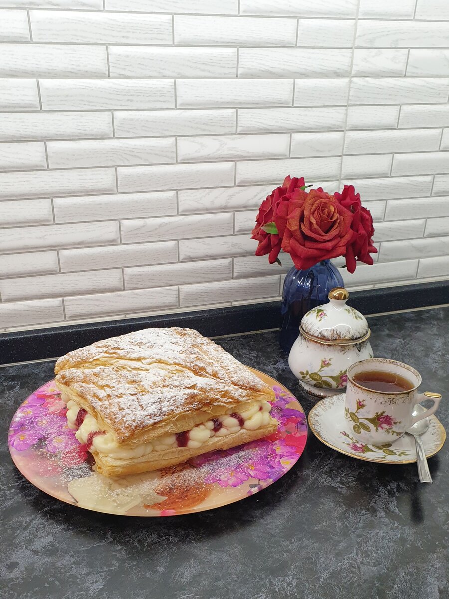 Готовое слоеное тесто выпекаем в духовке примерно минут 20 при 220 градусах. Затем достаем наше тесто переворачиваем и просыпаем сахарной пудрой и отправляем обратно в духовку минут на 5-10.