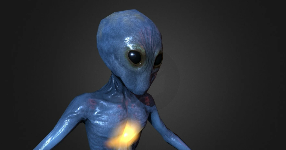 Внезапно в стене открылась дверь, и в комнату вошли три “монстра”. Они очень напоминали лицо на маске, которую он держал. Они были высокими, около 2 метров в высоту, синего цвета, все сплошь покр