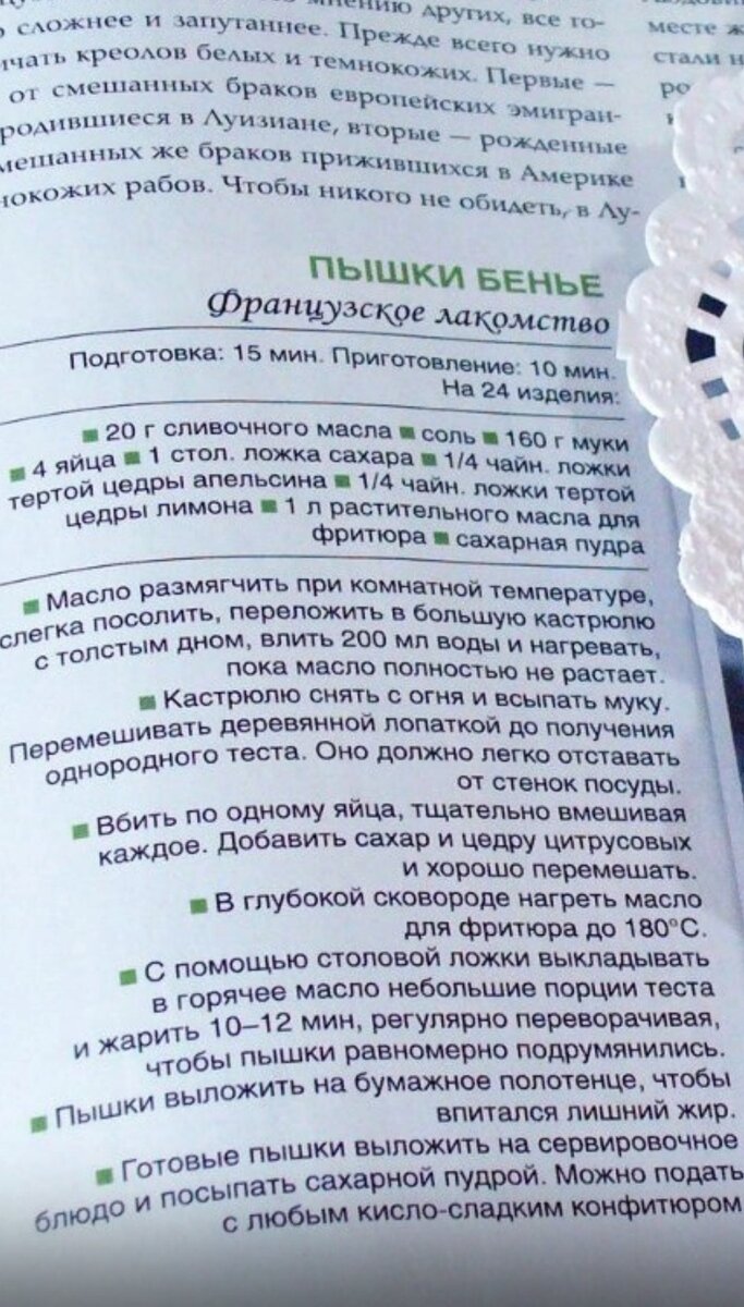 Доброе утро) Сегодня рецепт из кулинарного журнала Савёр. Я немного переработала) Мой вариант - * 1 стакан воды, 50 гр сливочного масла, пакетик ванильного сахара, пол чайной ложки соли, 2 ст.ложки сахара, закипятить. Снять с огня и всыпать стакан муки, энергично размешивая деревянной ложкой. Тесто получается гладкое и отстаёт от стенок кастрюли. Добавить 2 яйца, добавлять по одному, полностью вымешивая. в готовое тесто добавить 2 - 3 ст.ложки сыра фета. Тщательно растереть и вымешать. Жарить во фритюре, около 7 - 8 минут, переворачивая, до румяности. Выкладывать пышки во фритюр - с помощью десертной ложки. Готовые пышки вынуть на бумажное полотенце, чтобы убрать лишний жир. Слегка присыпать сахарной пудрой. Нежнейшие, воздушные пышки бенье, с легким ароматом ванили и тонким сырным вкусом.