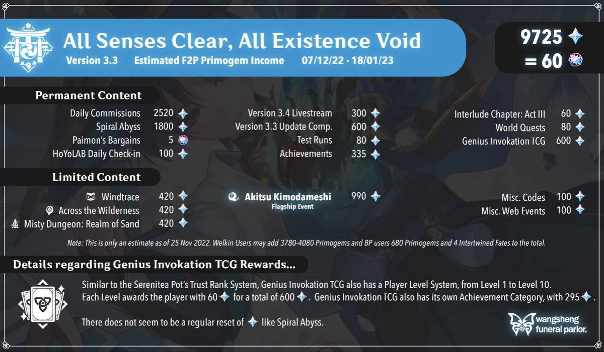 Обновление 3.3 для Genshin Impact должно выйти 7 декабря, поэтому игрокам интересно узнать, сколько бесплатных примогемов они смогут получить с помощью новой версии игры. Согласно расчетам Twitter-инсайдера WFP, апдейт 3.3 принесет игрокам порядка 9725 Камней Истока, это около 60 молитв. Вот основные источники примогемов: *60 примогемов за каждый из 10 уровней Кроме того, в обновлении 3.3 для Genshin Impact появится карточная игра «Священный призыв Семерых». За достижения в ней также можно получить Камни Истока. Подробнее узнать, что игроков ждет в апдейте 3.3 можно в этом материале. Заглавное фото: genshin.global