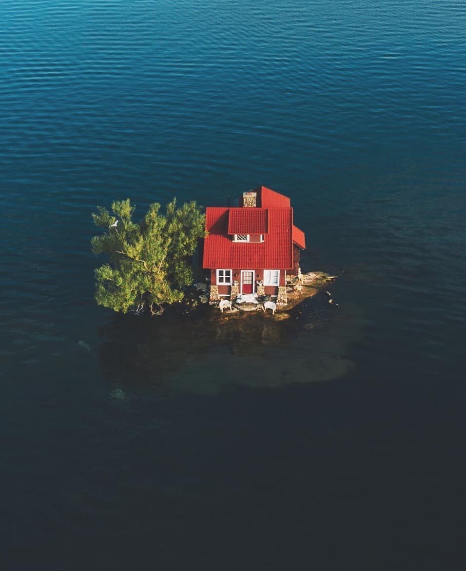 Дело в том, что на небольшом островке, площадь которого чуть больше 300 квадратных метров, легко поместился красивый домишко, дерево больших размеров, малюсенькая площадка для приготовления барбекю и всего три стула — для пикника. Поэтому хозяева назвали этот кусочек суши «Островом, где достаточно места» (Just Room Enough Island).