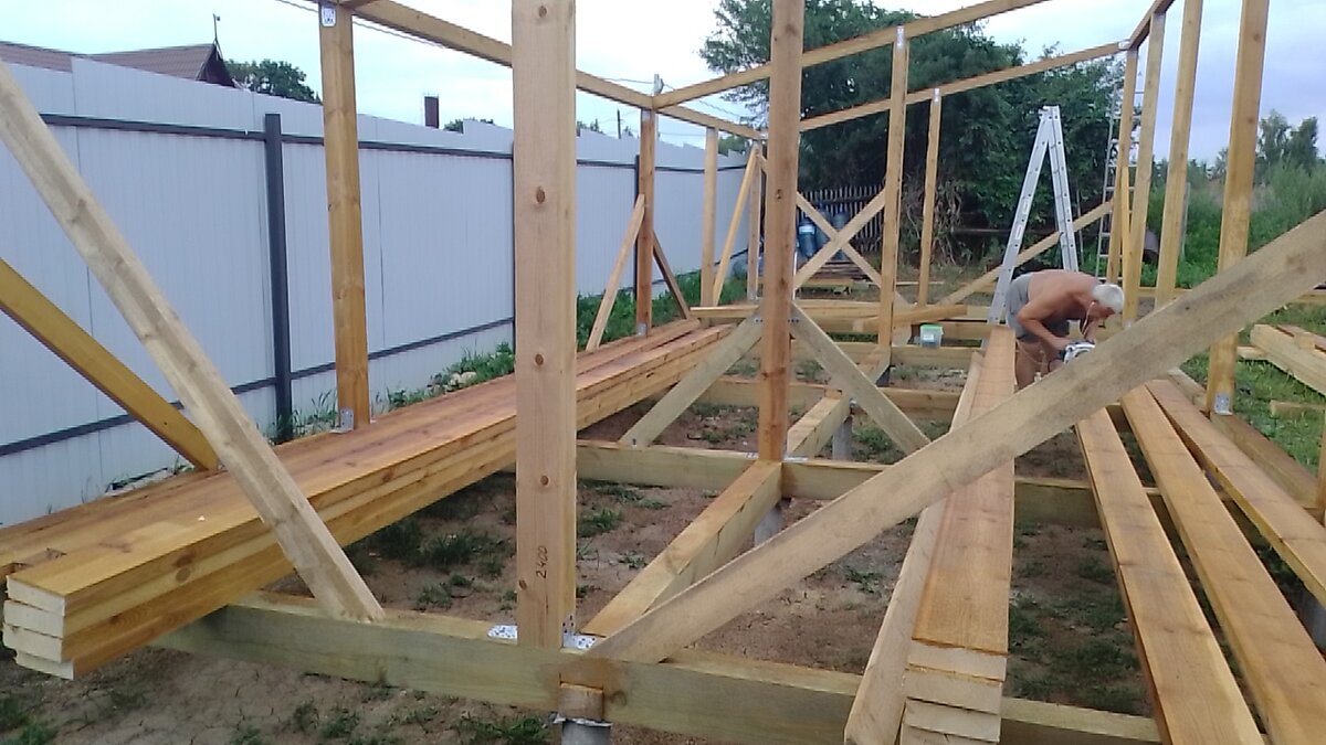 Продолжаем разговор по теме, сегодня про крышу. На фото ниже видно, что временные укосины заменены на постоянные.