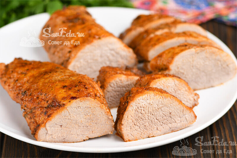 Показываю очень простой и быстый способ, при котором мясо в духовке всегда получается сочное и нежное. Так можно запекать мясо на кости или мякоть. Очень вкусно получается свиная грудинка, лопатка, карбонад, шейка или вырезка. И птицу, и говядину так тоже можно готовить. Будет разное время запекания. Потребуется только мясо, любимые специи и растительное масло. Порции 4-5 Время подготовки 20 минут Время приготовления 30 минут Ингредиенты Инструкции 1. Для приготовления подходит любое мясо, просто будет разное время приготовления. У меня свиная вырезка (2 куска 500 г и 450 г). Она готовится быстро. Куски покрыты пленками, аккуратно срезаем их. 2. Вырезку со всех сторон посыпаем солью, сладкой паприкой (дает отличный цвет) и любимыми специями (у меня сухая смесь аджика: разный перец, сушеные травы, кориандр и хмели-сунели). Можно брать тимьян, розмарин или просто готовые специи для мяса. Поливаем маслом (по 1 ст. л.) и хорошо распределяем. 3. Запекать свинину будем в пергаменте для выпеч