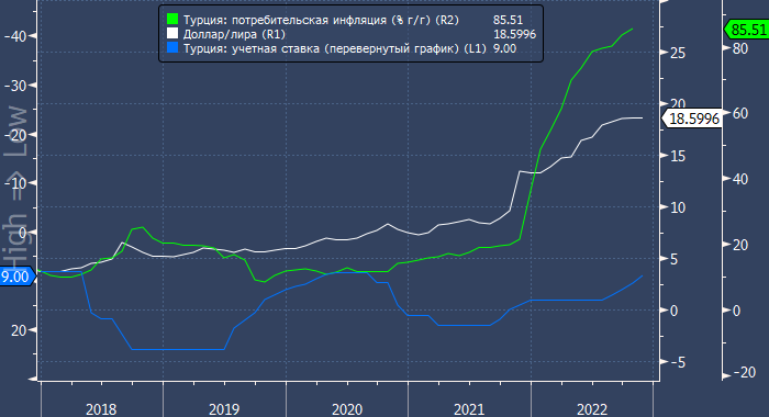 Президент Турции Реджеп Тайип Эрдоган обещает, что процентные ставки в стране останутся в области однозначных значений, но инфляция при этом снизится. В этот четверг Банк Турции понизил учетную ставку до 9% с 10,5%, несмотря на рост инфляции на 85% в годовом сопоставлении. Президент Турции Реджеп Тайип Эрдоган обещает, что процентные ставки в стране останутся в области однозначных значений. «Мы понизили ставки до однозначных значений, где они и останутся. Не волнуйтесь, инфляция также снизится», — сообщил политик в субботу, выступая в Конье. Напомним, что в этот четверг Банк Турции понизил учетную ставку до 9% с 10,5%, несмотря на рост инфляции на 85% в годовом сопоставлении. В последние месяцы Эрдоган усилил нажим на ЦБ страны, требуя дальнейшего снижения ставок, полагая что эта мера поддержит экономический рост и экспорт. Пока же результатом данной неоднозначной политики является снижение курса лиры к доллару на 28,5% с начала года, благодаря чему она занимает второе место среди самы