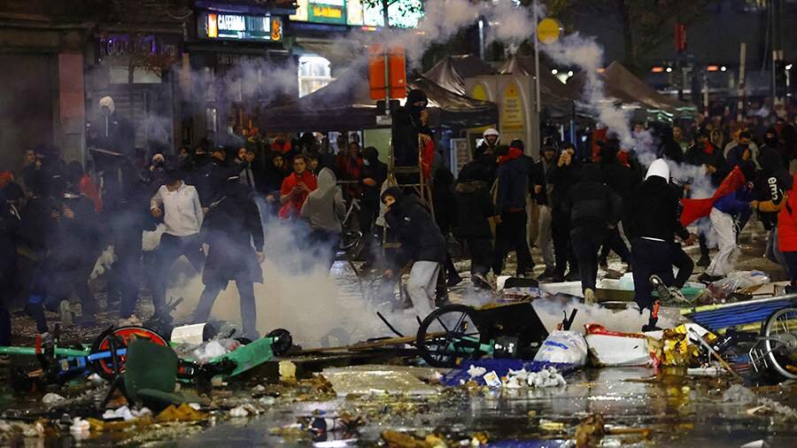 Около 10 человек задержаны в Брюсселе в результате беспорядков из-за поражения сборной Бельгии от команды Марокко на чемпионате мира – 2022 по футболу в Катаре. Об этом 27 ноября сообщает RTBF. «Было произведено около десяти административных арестов и один судебный арест», — говорится в публикации. Отмечается, что десятки человек в центре Брюсселя подожгли мусорные баки, повредили транспортные средства и городскую технику. Полиция применяла водометы и слезоточивый газ, чтобы разогнать их. Как сообщает издание Le Soir, есть пострадавшие. На фоне беспорядков были закрыты для движения некоторые улицы в центре города, а также станции метро. Кроме того, Le Soir сообщает о десятке арестов в Антверпене. Также издание написало, что празднование победы Марокко переросло в беспорядки в Льеже. Ранее в этот день стало известно, что в центре Брюсселя начались беспорядки, футбольные фанаты жгли файеры и разбивали дубинками и камнями автомобили. Полиция сразу же вмешалась в происходящее. 27 ноября сб
