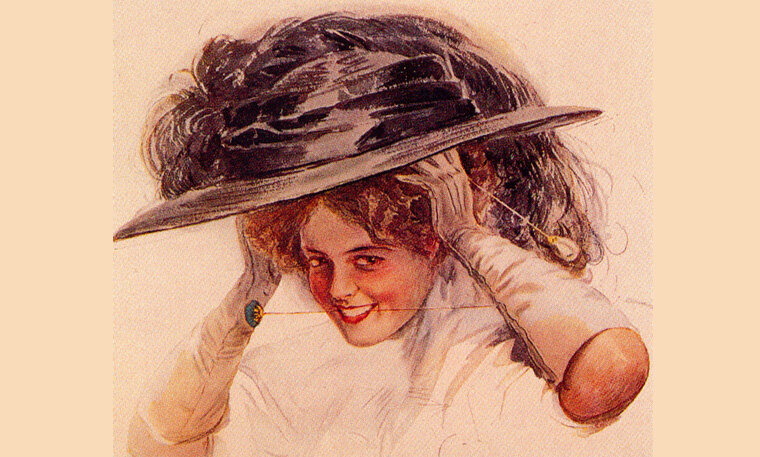 В начале XX века пышность женских причёсок достигает очередного апогея. В «Дамском журнале» за 1912 год даже писали, что городские управы запретили заходить в трамвай дамам, чьи причёски были усеяны колючими шпильками и булавками. Под стать причёскам были и огромные шляпы со страусиными перьями.