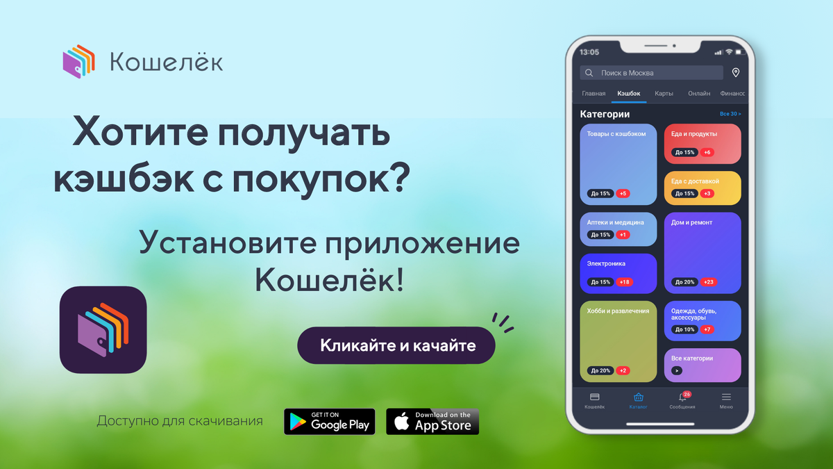 Возвращайте деньги с покупок: до 6000 тысяч рублей Скачайте приложение Кошелек, чтобы идти в ногу со временем! В нем вы можете хранить все свои карты, получать новые карты лояльности, следить за акциями в любимых магазинах, а еще возвращать до 6000 рублей с покупок в месяц! Оплачивайте товары и услуги онлайн и офлайн любым удобным способом — банковской картой или наличными, сканируйте чеки и получайте кэшбэк от партнеров до 20%. Выводить кэшбэк можно на любую банковскую карту российского банка. https://koshelek.prfl.me/kondor69/cc7c503163ac
