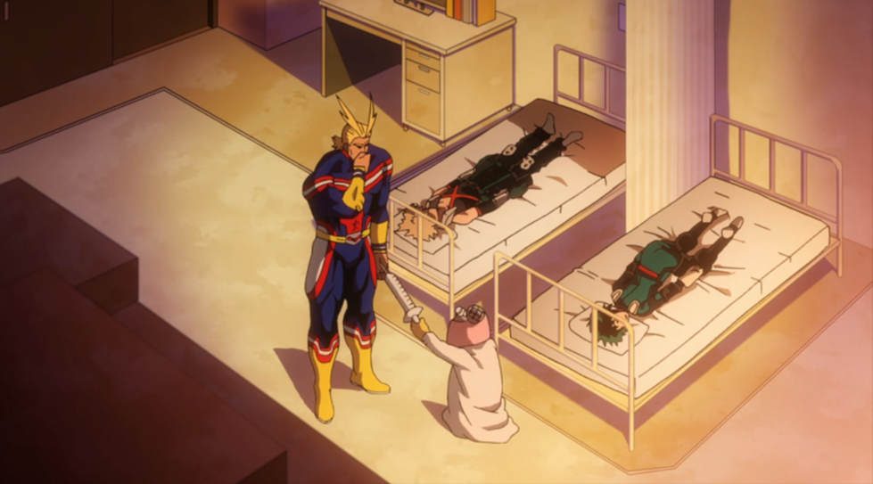 И как вы понимаете, зацелует главного героя наша бабуля ни раз и не два, заставляя нас сожалеть лишь о том, что мы не застали её в лучшие годы. Впрочем, справедливости ради её причуда имеет и недостаток. Силы регенерации не берутся из воздуха, тела пациентов, которых лечит Чиё, используют резервы их собственных организмов, а потому использовать причуду слишком часто становится опасно.