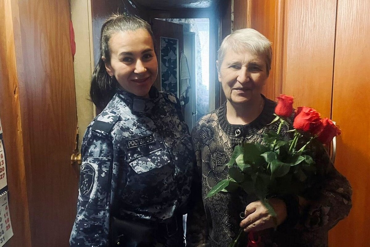 Сотрудники и ветераны вневедомственной охраны вручили женщинам цветы и памятные подарки, а также пожелали благополучия и креп