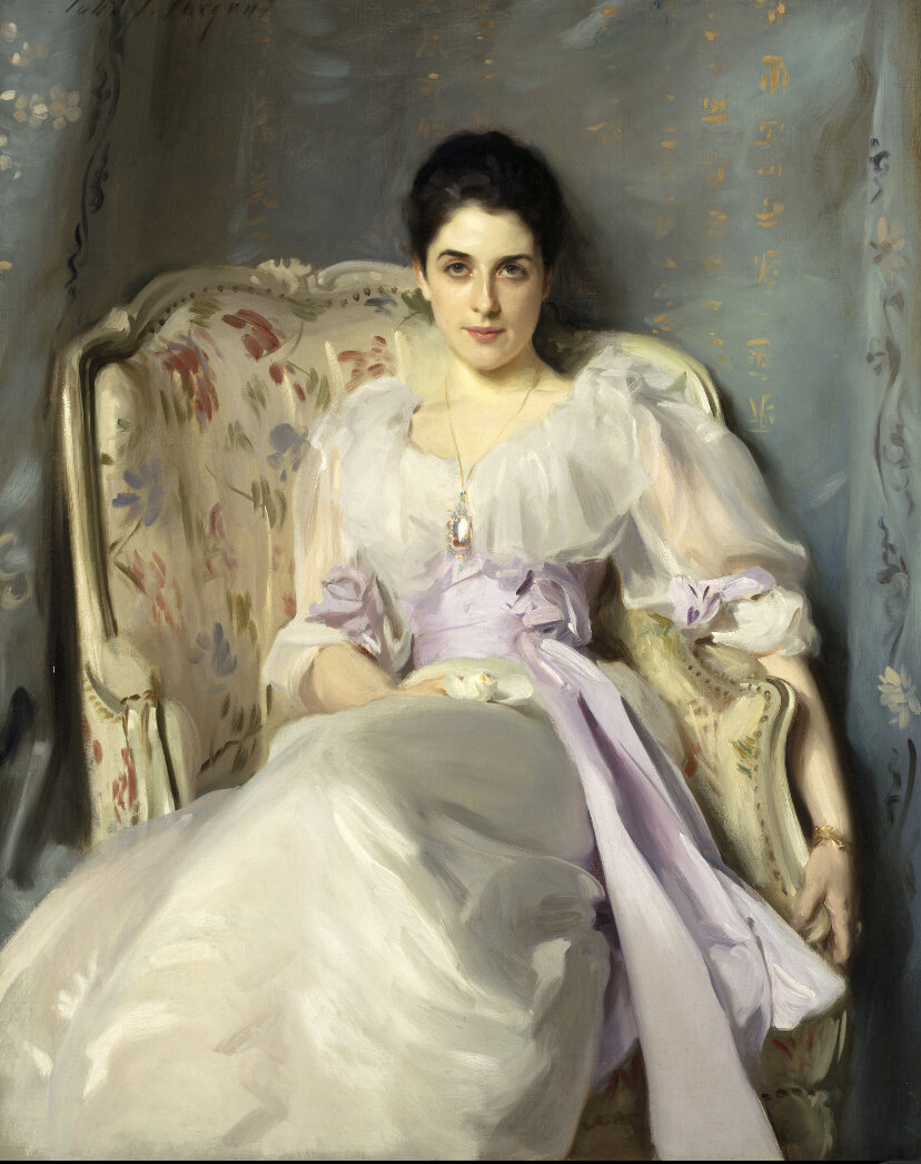 Уверенный взгляд и расслабленная поза Леди Агнью (урождённой Гертруды Вернон) были необычными для портретов того времени. Ощущение спонтанности было усилено гибкой и стремительной работой кисти. Когда картина была выставлена в Королевской академии в Лондоне в 1893 году, она имела мгновенный успех. Одобрительное принятие помогло закрепить репутацию Сарджента в Британии. В то же время это сделало Леди Агнью известной персоной высшего общества.
