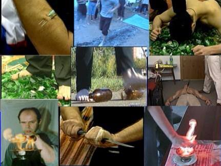 • Хождение, лежание, прыжки на стекла, кувыркание на стеклах, разбивание ногой бутылок