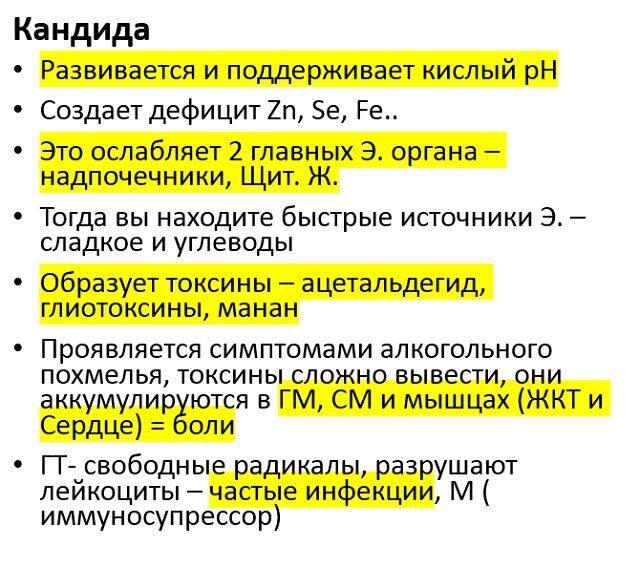 — то есть убита кандидой и другими процветающими на дешевом топливе бактериями. Ваш процент счастья — падает! Ведь вы питаете тех, кто разрушает тело и “питает” вас 79 биотоксинами: