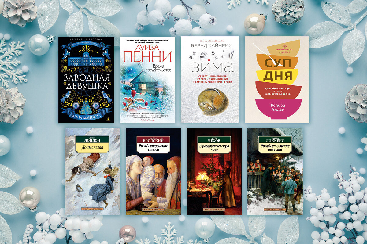Собрали 8 историй, которые помогут создать «зимнее» настроение. В подборку включены книги на любой вкус: тематические рассказы Антона Павловича Чехова и Джека Лондона, рождественские стихотворения Иосифа Бродского, повести Чарльза Диккенса, нонфикшн о секретах выживания животных зимой, два увлекательных детектива и кулинарная книга с рецептами согревающих супов. Приятного чтения!
