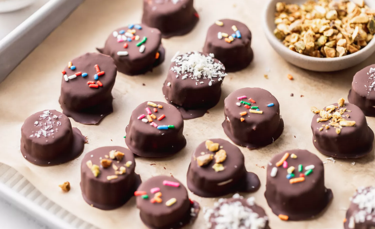 Это восхитительное сочетание вкуса и текстуры! Простые в приготовлении, натуральные лакомства порадуют и вас и ваших детей. Ингредиенты: Способ приготовления: 1. Застелите противень пергаментной бумагой. Добавьте около 5 см. воды в пароварку или небольшую кастрюлю и доведите до кипения. Как только вода закипит, убавьте огонь до минимума. 2. Тем временем очистите бананы, обрежьте концы и нарежьте их ломтиками толщиной 1.5 см. Равномерно разложите на противне. Вытрите нож и разделочную доску и мелко нарежьте шоколад. 3. Добавьте нарезанный шоколад и масло в небольшую жаропрочную стеклянную или металлическую миску. Поставьте миску на кастрюлю с кипящей водой (водяная баня) и с помощью гибкой лопаточки перемешайте шоколад, пока он не растает и не останется твердых частиц, около 2 минут. Снимите миску с огня. 4. Смажьте зубцы вилки растопленным шоколадом и положите сверху ломтик банана. Используйте гибкую лопатку или ложку, чтобы полить шоколад на ломтик банана, полностью покрывая его. Пер