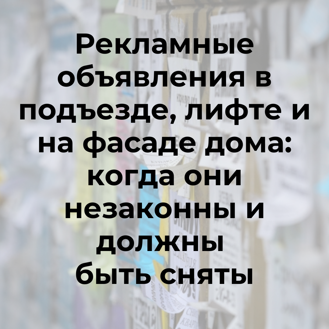 📋 В советские времена было популярно развешивать объявления на специальных досках, потому как тогда не было интернета, и даже телефоны были не у всех. Затем объявление стали размещать и около подъезда, на стенах домов и даже в лифтах. Но мало кто знает, что расклейка подобных объявлений не всегда законна. Вот несколько нюансов🔽 👩⚖️ Закон о рекламе N 38 ФЗ не содержит специальных требований к рекламным объявлениям внутри подъездов и лифтов. Но: 📍Размещать рекламные объявления и вывески на общедомовом имуществе можно только с согласия общего собрания жильцов, в том случае, если согласны хотя бы 2/3 проживающих. Кстати, владельцы жилых помещений в этом случае могут затребовать некоторую "комиссию" с тех, кто собирается устанавливать рекламные конструкции. Тогда необходимо заключить соответствующий договор с управляющей организацией дома, и в его рамках выплачивать компании определённые взносы. А уже распоряжаться этими средствами сможет собрание собственников. Например, пустить деньг