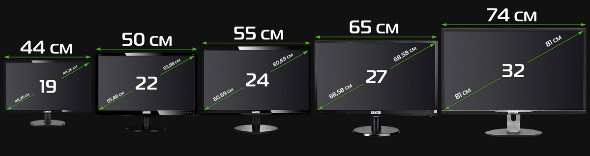 - 19-22 дюйма — бюджетные офисные модели. Для домашнего использования берутся редко. Имеют самую низкую стоимость.