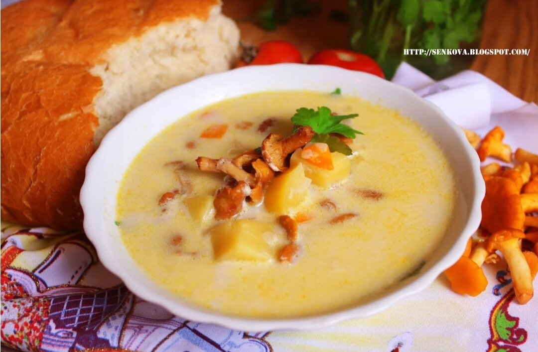 Нам понадобится: Лисички - 300 гр. Картофель - 2-3 шт. Морковь - 1 шт. Сыр плавленый - 150 гр. Масло сливочное - 20 гр. Лук зелёный с головками - 3 шт. Базилик, перец, соль, лист лавровый. Немного юмора из советского журнала "Крокодил" :