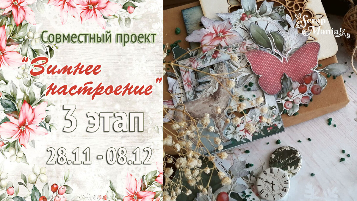 Продолжаем совместный проект : Новогодний альбом "Зимнее настроение"/#SM_спЗимнееНастроение с Наташей Курзиной. Наш альбом будет из новой коллекции "Зимняя Прелесть". Дорогие участники, не забываем что в альбомных проектах наши этапы длятся по 10 дней. И у вас будет достаточно времени чтобы сделать работу, сфотографировать и зарегистрировать ее. Где? Об этом вы прочитате внизу Обращаю внимание участников с ВКонтакте: обязательно откройте вашу страничку и проверьте чтобы была возможность оставлять комментарии! Напоминаем, что подарки у нас будут на каждом этапе и в самом конце большой приз по итогам всего СП. Как вы знаете, на каждом этапе у нас будут ОЭ (Обязательные Элементы) На этом этапе ОЭ: фишка (самодельная или готовая) + конструкция для фотографий "каскад" По итогам каждого этапа и всего СП наша дизайн-команда выберет: Наталья записала видео МК по созданию третьего разворота нашего альбома, который мы представляем вашему вниманию: Рекомендуем просмотреть эфир в первый день и, ес
