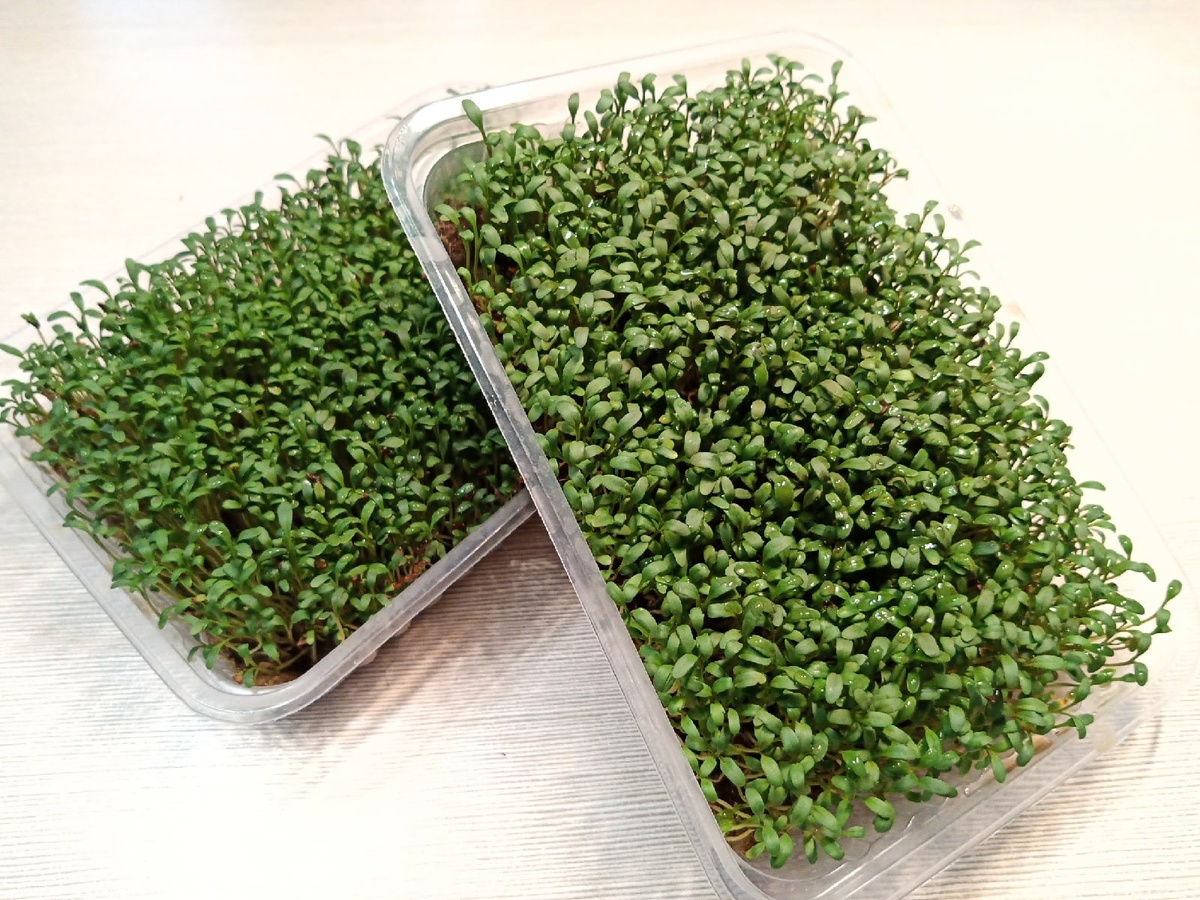 Микрозелень кресс-салата Кресс-салат – один из полезных, аппетитных микрогринов! Проросшие семена кресс-салата насыщены бета-каротином, йодом, витаминами С и К. Благодаря высокой питательной ценности они благотворно влияют на весь организм, нормализуют состояние нервной системы и повышают иммунитет. Помимо пользы, микрозелень кресс-салата прекрасно дополняет и украшает любые блюда. Пряный вкус и мягкая, нежная текстура делает ростки кресс-салата фаворитом среди шеф-поваров. Их используют в супах, салатах, холодных закусках и гарнирах. Домашним поварам микрозелень кресс-салата отлично подходит для приготовления смузи и в качестве пикантной добавки к бутерброду или салатному миксу, чтобы добавить им пряности. Молодые ростки кресс-салата, попробовав, легко узнать по отчетливому горчично-пряному аромату При регулярном употреблении, микрозелени кресс-салата улучшает пищеварение и состав крови, справляется с кашлем и повышенным кровяным давлением. Проросшие семена кресс-салата также оказываю