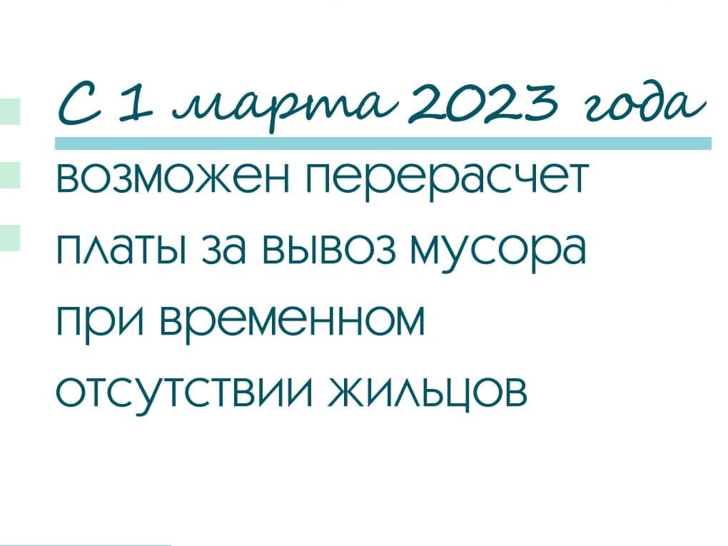С 1 марта 2023 года возможен перерасчет платы за вывоз мусора при временном отсутствии жильцов