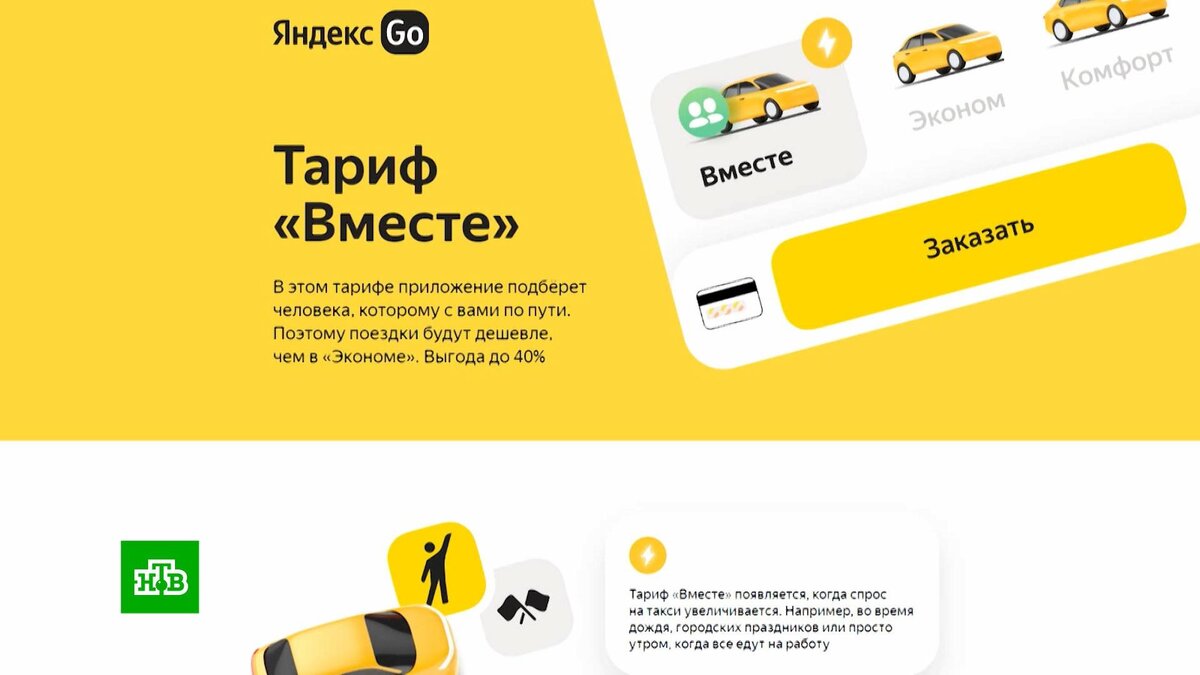 [ Смотреть видео на сайте НТВ ] «Яндекс Go» запускает сервис поиска похожих маршрутов на такси с попутчиком. Будет дешевле, но немного дольше. Агрегатор такси «Яндекс Go» запустил возможность поездок на такси с попутчиком. Идея такая — сервис видит, что у двух людей похожие маршруты и предлагает им объединить поездки. Стоимость поездки для каждого из пассажиров будет ниже, а водитель все равно заработает больше, выполняя, по сути, два заказа одновременно. Чтобы воспользоваться услугой, надо выбрать в приложении опцию «вместе». Но нужно понимать, что и время поездки увеличится, в среднем на 10 минут. Попутчиков одновременно может быть только двое. Новая опция может появляться в тарифе «Эконом» только когда количество желающих уехать на такси значительно больше, чем свободных машин. Пока что сервис доступен только в Москве и Петербурге. Тестировать новый тариф «Яндекс Go» начал с лета. [ Смотреть видео на сайте НТВ ]