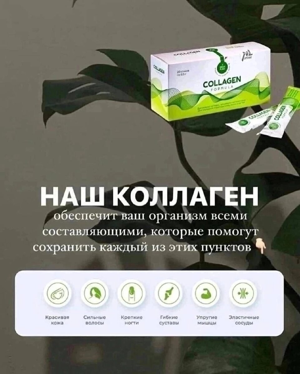 ⭕️Коллаген — нитевидный белок, который составляет основу соединительной ткани. На коллаген приходится примерно треть всех белков в нашем организме. ⭕️Это один из ключевых компонентов суставов, костей, сухожилий, волос, кожи, ногтей, зубов. Кроме того, коллаген образует стенки вен, артерий и капилляров. ⭕️Его название происходит от греческого слова kolla, которое переводится как «клей». Это неслучайно: основную функцию коллагена многие специалисты сравнивают именно с клеем. 🍀 Коллаген от nl🍀 ‼Остаемся красивыми и молодыми‼ 👋Появились морщинки? 👋"Лезут" волосы? 👋Хрупкие ногти? 👋Быстрая утомляемость? 👋Все это может быть связано с нехваткой коллагена. ЧТО ОН ДЕЛАЕТ С НАМИ??? 🔴Уменьшает и разглаживает морщины 🔴Замедляет процесс старения. 🔴Принимает определенное участие в похудение. 🔴 Обеспечивает организм основными строительными элементами, необходимыми для регенерации кожи, волос и ногтей. 🔴Питает и восстанавливает хрящевую и костную ткань. 🔴Поставляет эле