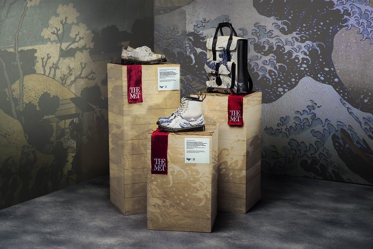 Вдохновленную Кацусикой Хокусаем. Фото: Dr. Martens x The Met Обувной бренд Dr.Martens и Метрополитен-музей в Нью-Йорке объединились для создания высокохудожественной коллекции. Партнеры посвятили ее знаменитому японскому художнику Кацусике Хокусаю, а точнее, серии его работ «Тридцать шесть видов горы Фудзи». Этот цикл Хокусай создавал в 1830-е годы, когда ему уже исполнилось 70 лет, и его взгляды на творчество и собственное жизненное предназначение прошли много этапов эволюции. Серия состоит из 46 цветных гравюр по дереву. В нее входит и «Большая волна в Канагаве» – самая известная японская гравюра и одно из самых узнаваемых произведений во всем мировом искусстве. Изысканное и оригинальное изображение волны неоднократно вдохновляло дизайнеров и становилось элементом модных коллабораций, закономерно, оно фигурирует и в совместно коллекции Dr. Martens x The Met. Также бренд использовал гравюру «Вид на Фудзи с горы Готэньяма у реки Синагава». На ней группа людей, устроившихся на пикник п