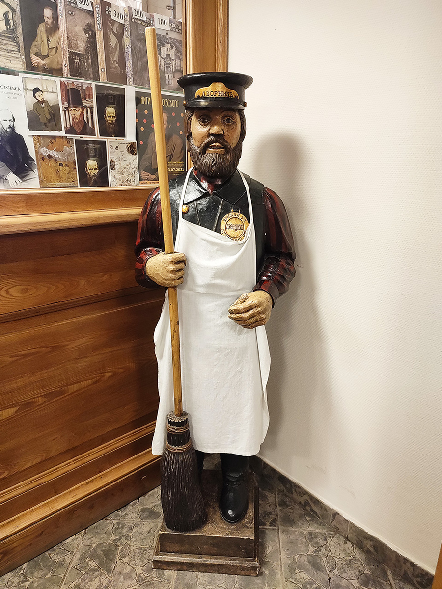 Здесь хранятся не только личные предметы семьи, но и разные экспонаты, связанные с произведениями писателя. Вот, например, персонаж из повести «Хозяйка» дворник-татарин. «Дворник был молодой малый, лет двадцати пяти, с чрезвычайно старообразным лицом, сморщенный, маленький, татарин породою…». Он «встречает» посетителей у входа в музей. А на втором этаже находится квартира Достоевского, куда мы сейчас и пойдем.