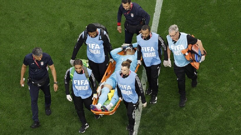 Англия — Иран Уже второй матч ЧМ-2022 начался с жесткого столкновения вратаря сборной Ирана Алирезы Бейранванда с защитником его же команды Маджидом Хоссейни. Бейранванд более пяти минут лежал на поле, пока ему оказывали медицинскую помощь. Голкипер со сломанным носом сначала планировал продолжить матч, но почти сразу же после паузы показал, что ему все-таки нужна замена. Его уносили с поля на носилках. Иран к тому же проиграл тот матч со счетом 2:6. Аргентина — Саудовская Аравия Уже на следующий день новый жесткий эпизод произошел в поединке-сенсации. Саудовская Аравия неожиданно обыграла Аргентину (2:1), но запомнился матч не только этим. В концовке встречи голкипер саудитов Мохаммед Аль-Оваис при попытке поймать мяч на выходе ударил коленом в голову партнеру по сборной Ясиру Аль-Шахрани. Защитник Саудовской Аравии рухнул на газон и лежал без движения, медики унесли его с поля на носилках. Позже в Сеть попал снимок якобы рентгена футболиста, который оказался фейком: Но 30-летнему Яси