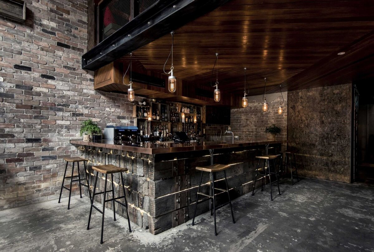 Стиль идеально подходит тематическим барам, так как позволяет гармонично комбинировать созданную на заказ мебель, ключевые особенности здания и контрастное сочетание всех остальных деталей.