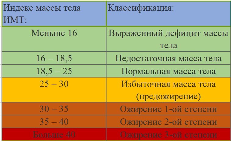 Далее таблица ИМТ, чтобы можно было легко оценить результат вычислений.