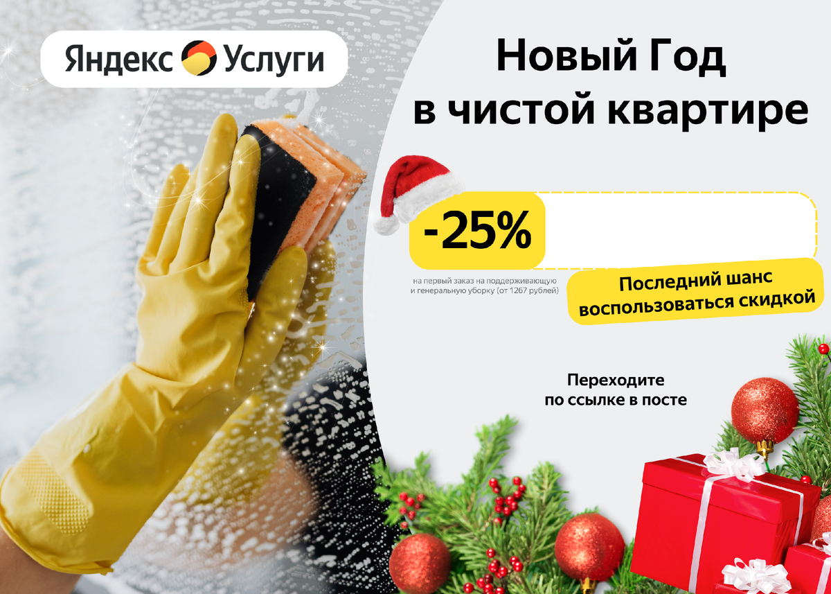 Дома всегда найдутся дела, а так хочется качественно провести время с семьей, погулять по магазинам или наконец-то посвятить время своему хобби. На помощь придет поддерживающая уборка от сервиса Яндекс Услуги Клининг: пропылесосят ковры и помоют пол - протрут зеркала - помоют фасады кухонных шкафов и столешницу - почистят унитаз и ванну, душевую кабину, раковину и смесители - поменяют постельное белье и многое другое. Клинер сможет приехать уже через 3 часа после оформления заказа! А по промокоду PRLOGI Вы получите скидку 25% на поддерживающую и генеральную уборку, только до конца ноября. Переходите по ссылке: #https://uslugiclean.prfl.me/5dff1110f9614900c07b3f93/3fab12c406c8