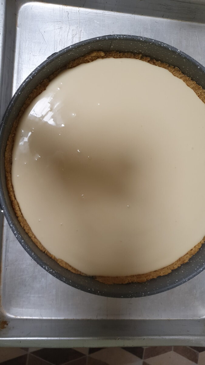 Основа 1. Печенье- 400г. 2. Слив. масло- 180г. Печенье измельчить, масло растопить и соединить вместе. Дно разъемной формы выстелить пергаментом. В форму выложить печенье с маслом, стаканом сформировать бортики и поставить в холод. Сливочная основа 1. Сыр ( маскарпоне)-600г 2. Сливки 35%- 200г 3. Яйца - 3 шт 4. Сахар - 150г 5. Ванилин или ванильный сахар Сыр с сахаром взбить на небольшой скорости, добавить яйца, ванилин, сливки( холодные). Массу выложить на корж. Украшение 1. Шоколад - 1 плитка Шоколад растопить, остудить и вылить на массу. Шпажкой сделать узор. Круглую разъемную форму с тортом обернуть фольгой и поставить в форму с водой. Выпекать 1ч при 180 гр. Торт готов, когда середина еще трясется. Остудить при комнатной температуре и поставить в холодильник на ночь. Приятного аппетита!