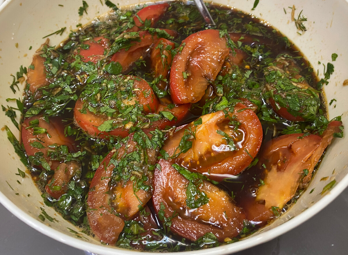 Закуска из помидоров с соевым соусом.