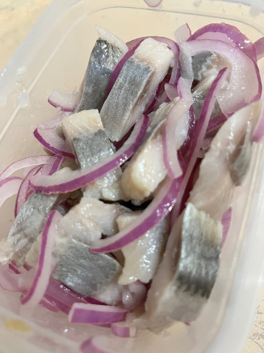 Нам потребуется: Приготовление: Филе сельди нарезать не большими кусочками. Лук почистить и нарезать полукольцами. В контейнере с крышкой смешать все ингредиенты и оставить на 1 час. Вкусная селедочка готова! Приятного аппетита!