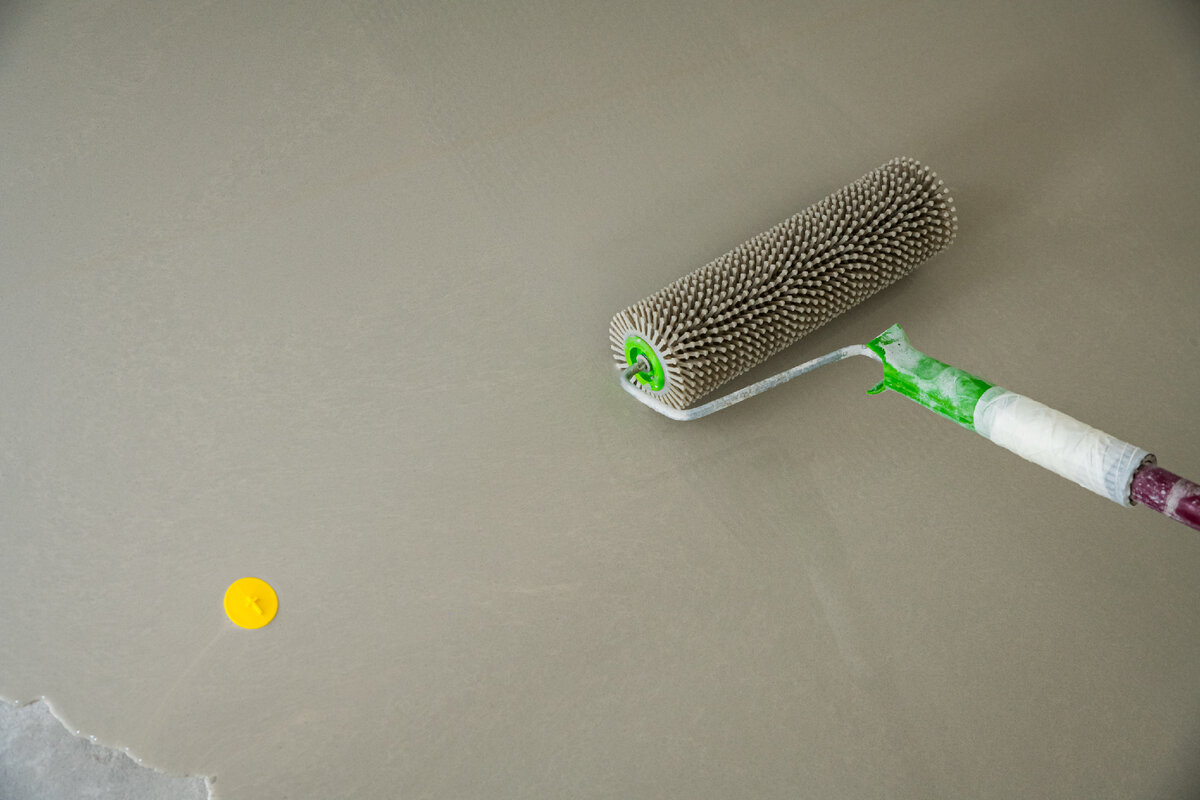 Наливной пол - это очень удобный в работе материал для получения идеально ровного пола. Результат почти всегда превосходит ожидания – нужно лишь четко соблюдать очередность шагов! Давайте обсудим! Первый шаг – подготовка основания Вроде бы все очевидно, но… Не устанем повторять: тщательная подготовка основания - гарант отличного результата. Какого бы типа не была поверхность – ее нужно загрунтовать. Количество слоев зависит от того, насколько она хорошо впитывает жидкость. Грунтовка обеспечивает более хороший контакт наливного пола с основанием, укрепляет его, если оно слабое или пылящее. По периметру помещения фиксируем демпферную ленту, чтобы пол и стены могли «гулять» друг относительно друга. В противном случае готовый высохший пол может потрескаться! Ширина ленты должна быть больше высоты заливаемой смеси. Второй шаг – определяемся с нулевым уровнем! Это плоскость, построенная параллельно полу через самую высокую точку основания. Определить ее можно с помощью разных инструментов