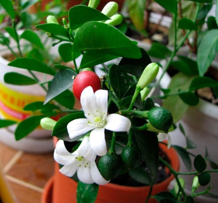 Вечнозеленые деревья и кустарники мурайя, либо муррайя (Murraya) являются представителями семейства Рутовые. Их родина Индия, Индокитай, а также острова Ява и Суматра, при этом данная культура предпочитает расти в тропических лесах. Это растение было названо в честь шведского ботаника Юхана Андреаса Муррея, который был учеником Карла Линнея. Данный род объединяет 8 видов, но в домашних условиях культивируется лишь один, а именно, мурайя экзотическая, либо метельчатая.