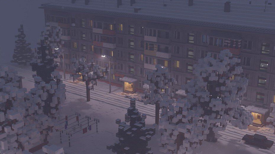 Картинка, до боли знакомая многим россиянам, получила оформление в стиле пиксель арт Игра-песочница Minecraft была выпущена в 2011 году и быстро стала настоящей сенсацией, но и сейчас, спустя одиннадцать лет, она не утрачивает своей популярности благодаря преданной публике и энтузиастам, создающим в пространстве интересные проекты. К примеру, поклонники шутера Half-Life 2 воссоздали в Minecraft мир игры с полноценным метро, канализацией, базами сопротивления и участками подземного города, на что у них ушло более пяти лет. Теперь же в игре появился новый проект, гораздо более простой, но в тысячу раз более близкий сердцу россиян. Пользователь под ником Polonasto создал то, что сейчас многие наши соотечественники могут и так лицезреть из своего окна, правда, без пикселей - типичный российский двор с панельками, покрытый снегом. Здесь вам и гаражи, и детская площадка, и уличные сушилки для белья. Автору отлично удалось передать атмосферу классического российского района в зимнее время. Те
