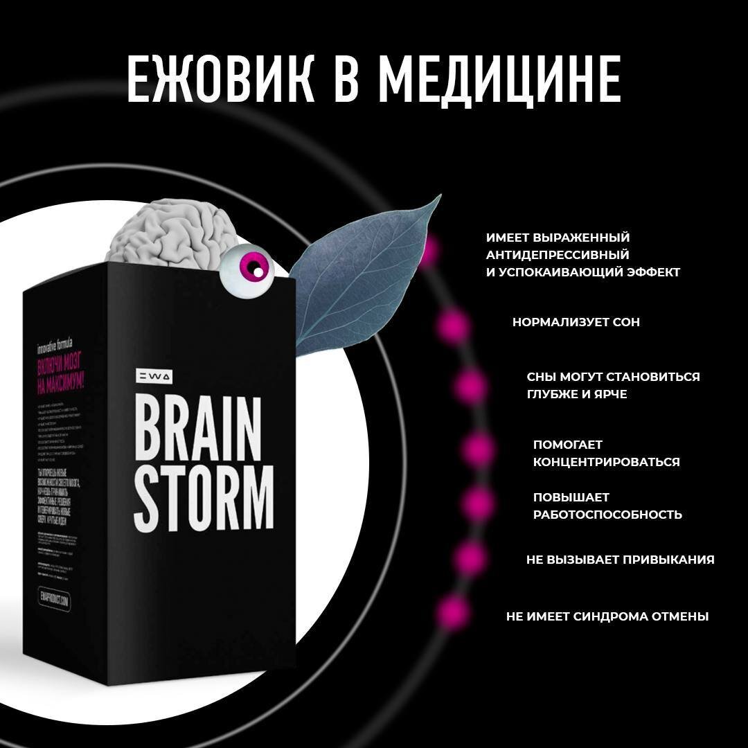 В современном ритме жизни мозг работает на запредельных скоростях, как же оставаться продуктивным? BRAINSTORM открывает безграничные возможности головного мозга, позволяет использовать по максимуму все его ресурсы. Наш продукт — помощник в принятии верных решений, генерации новых идей. Если вы чувствуете: ▪️Заторможенность, усталость и сонливость; ▪️Расфокусировку и забывчивость; ▪️Страх и неуверенность в принятии ответственных решений; ▪️Угнетающее чувство тревожности и периодические перемены настроения; ▪️Беспричинные головные боли, метеозависимость; То вам стоит попробовать инновационный продукт BRAINSTORM! В составе BRAINSTORM такие лучшие компоненты, как: ➖Ежовик гребенчатый — уникальный гриб, усиливающий когнитивную функцию, за счет выстраивания новых нейронных связей в головном мозге. ➖Готу Кола, по праву считающаяся «пищей» для мозга. ➖5HTP — аминокислота, антидепрессант растительного происхождения. Нормализует настроение, улучшает качество сна, восстанавливает мозговую работо