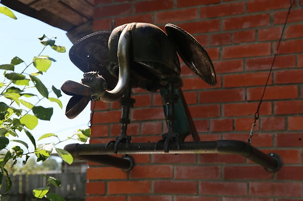ул. Шмидта, 11А, Таруса В Тарусе есть совершенно уникальный музей! И создал его совершенно уникальный человек - Сергей Жаров. Мастер на все руки! Когда-то он увлекался деревом, но однажды решил, что ему интереснее железо! На свалках металлолома, на авторазборках и в других неприглядных местах он находил нужные ему детали для изготовления его шедевральных произведений. Кое-что покупал. Ну кому придёт в голову сделать «человеческие» ноги из корпусов швейных машин? Или, извините, женскую грудь из гирь? А балетную "пачку" из цепей? Все изделия сделаны с любовью и большим юмором! А ещё семья Жаровых - Сергей и Татьяна - собирала старинные вещи и не очень старинные - родом из нашего детства... Здесь есть целая коллекция утюгов. Очень разных - угольных, газовых, спиртовых. Есть коллекция грампластинок советских времен. Есть граммофоны, патефоны, различные приемники, часы... Есть и живые «экспонаты». Не в любом зоопарке встретишь фазанов! Да и сам дом - интересной планировки! Мансардный этаж -